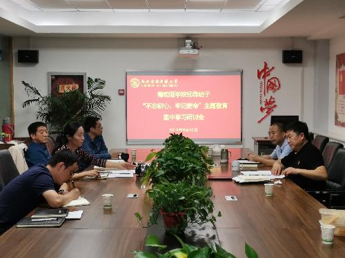 领导班子开展 “不忘初心、牢记使命”主题教育第一次集中学习研讨,围绕“如何把党的政治建设贯彻到学院各项工作之中”主题进行学习研讨,会议由学院党委书记胡俊鹏同志主持。
