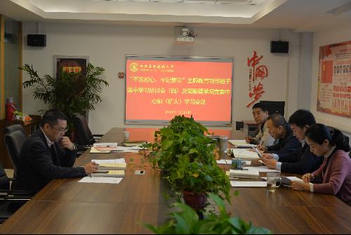 围绕“宗旨性质”专题开展 “不忘初心、牢记使命”主题教育第四次集中学习研讨,专题学习了《中国共产党章程》和《毛泽东同志为人民服务》,学院领导班子成员、党委委员、各党支部书记参加会议,学院党委书记胡俊鹏主持。