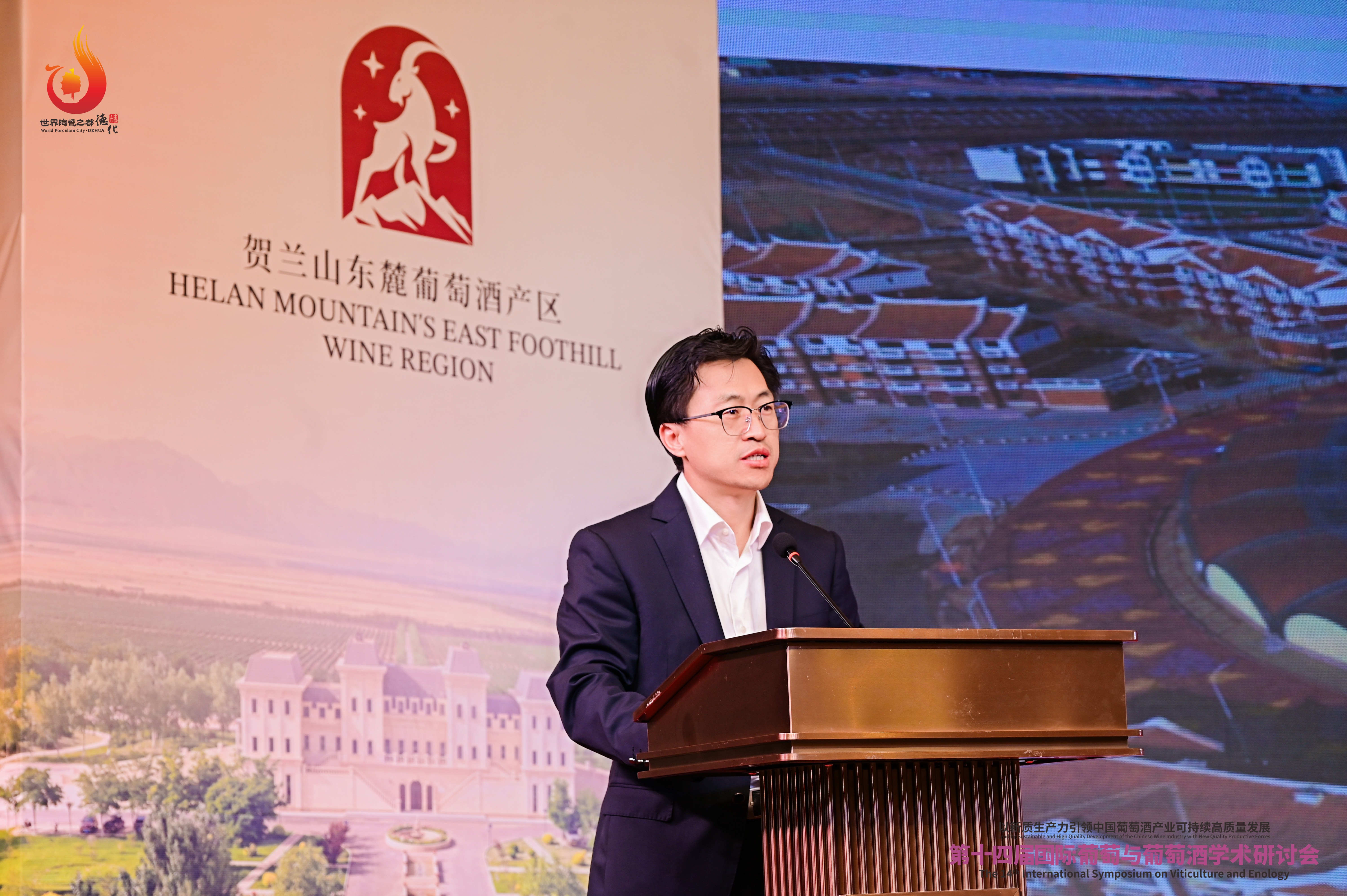李华教授、泉州工艺美术职业学院赖双安教授分别以“中国葡萄酒产业现状、发展预测与战略展望”“德化白瓷与葡萄酒融合共生研究”为题作主旨报告。