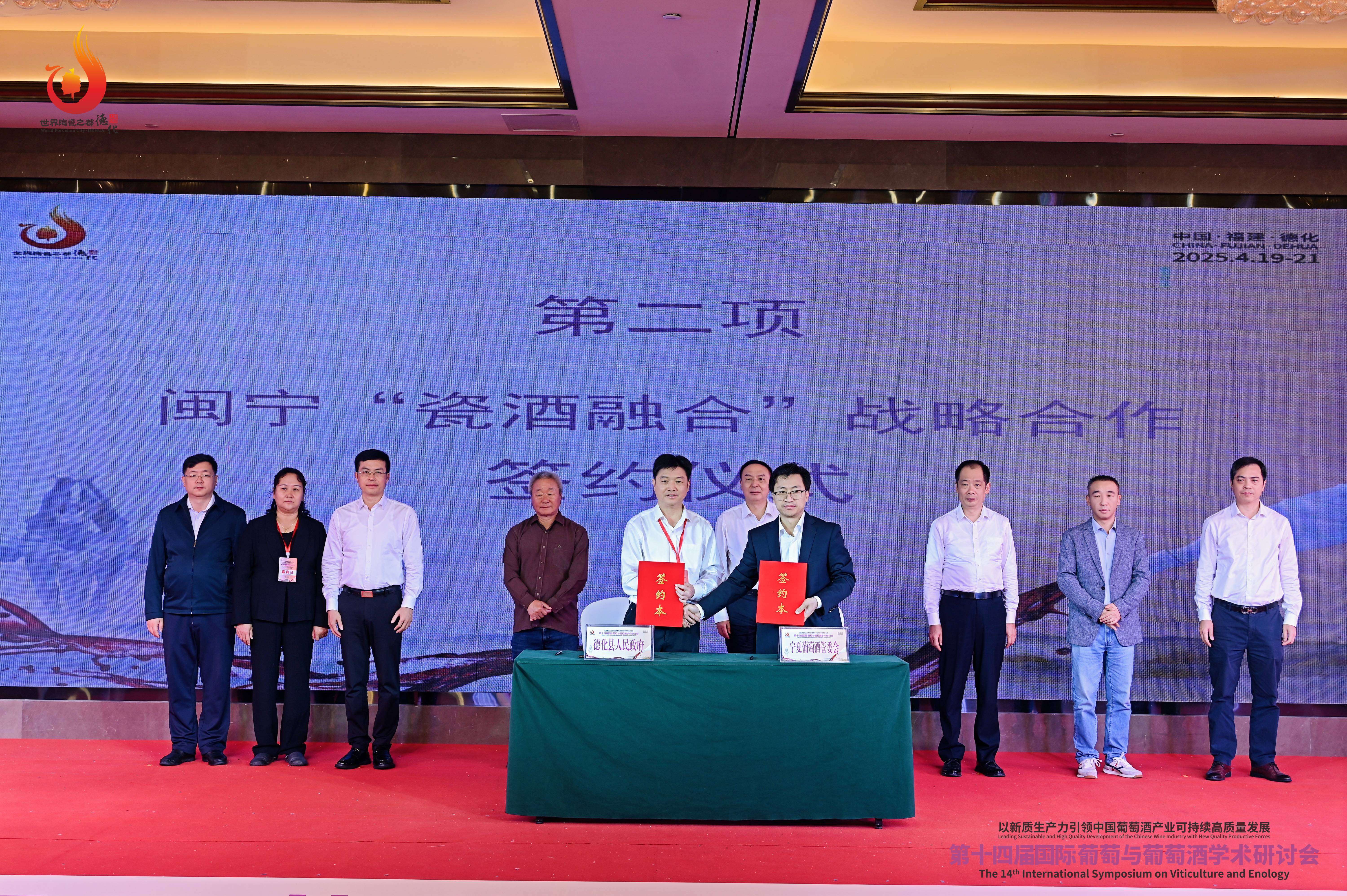开幕式上,德化县人民政府代县长吴志朴,国际葡萄与葡萄酒组织总干事John Barker,中国酒业协会葡萄酒分会秘书长火兴三,宁夏贺兰山东麓葡萄酒产业园区管理委员会副主任文学慧先后致辞。闽宁“瓷酒融合”战略合作签约仪式、2025年德化县“春秋杯”大学生乡村振兴创新创业大赛启动仪式、第一动漫